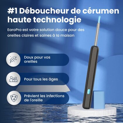 Maintenir l’hygiène des oreilles est une nécessité pour la santé en général, mais beaucoup de gens utilisent sans le savoir des méthodes dangereuses qui peuvent nuire à leurs oreilles. L’EaroPro rend les choses simples, sûres et efficaces. Grâce à des embouts souples et flexibles et à des visuels en temps réel, tu peux retirer délicatement le cérumen à la maison sans causer d’inconfort ou de dommages. Parfait pour tous les âges, cet appareil aide à prévenir les infections et à garder tes oreilles saines et claires. Je le recommande à tous ceux qui cherchent un moyen facile et innovant de prendre soin de leurs oreilles à la maison.
